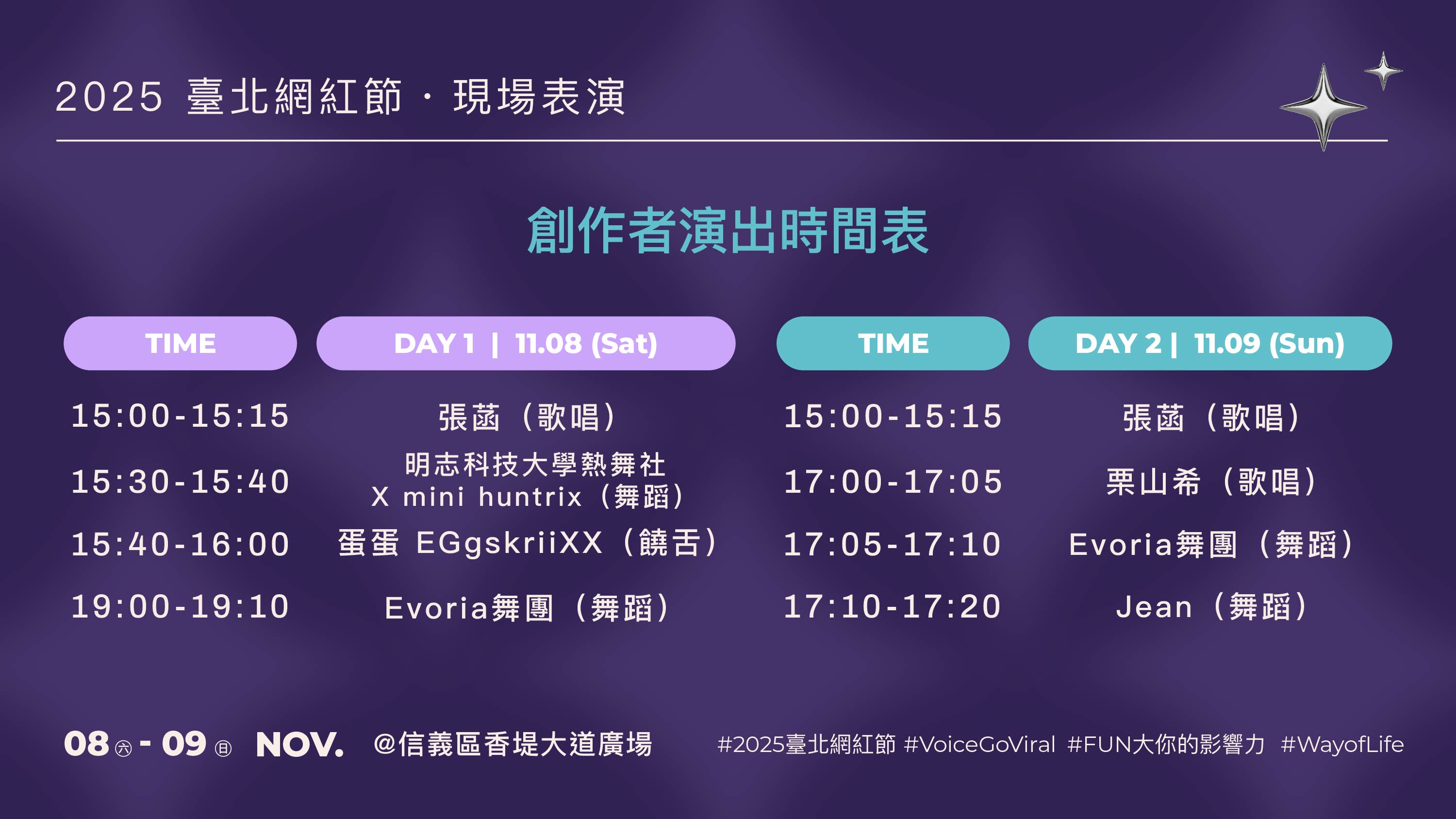 活動現場還有機會與時下熱門創作者互動、拍照打卡,共同創造 2025 臺北網紅節的獨特記憶,讓「影響力」成為城市生活中最真實的風景。